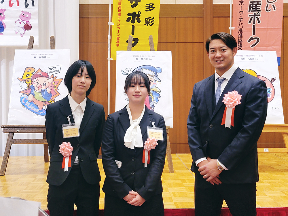 授賞式には、千葉ロッテマリーンズの 荻野貴司選手、佐藤都志也選手 も出席。学生の作品発表と表彰が行われ、会場は終始温かい雰囲気に包まれました。