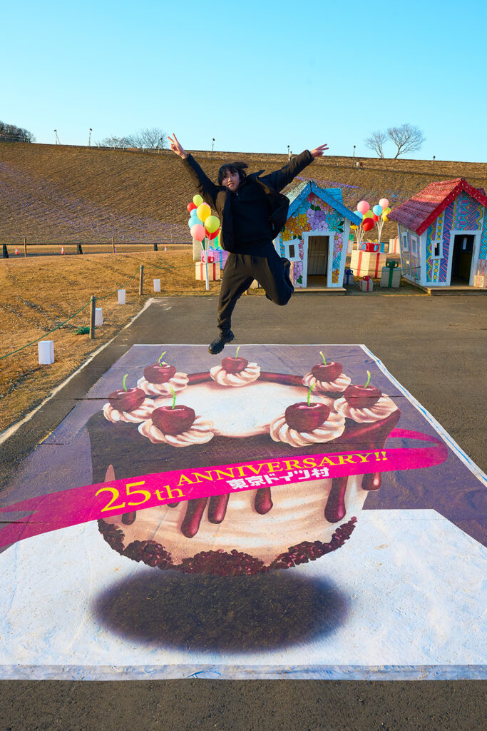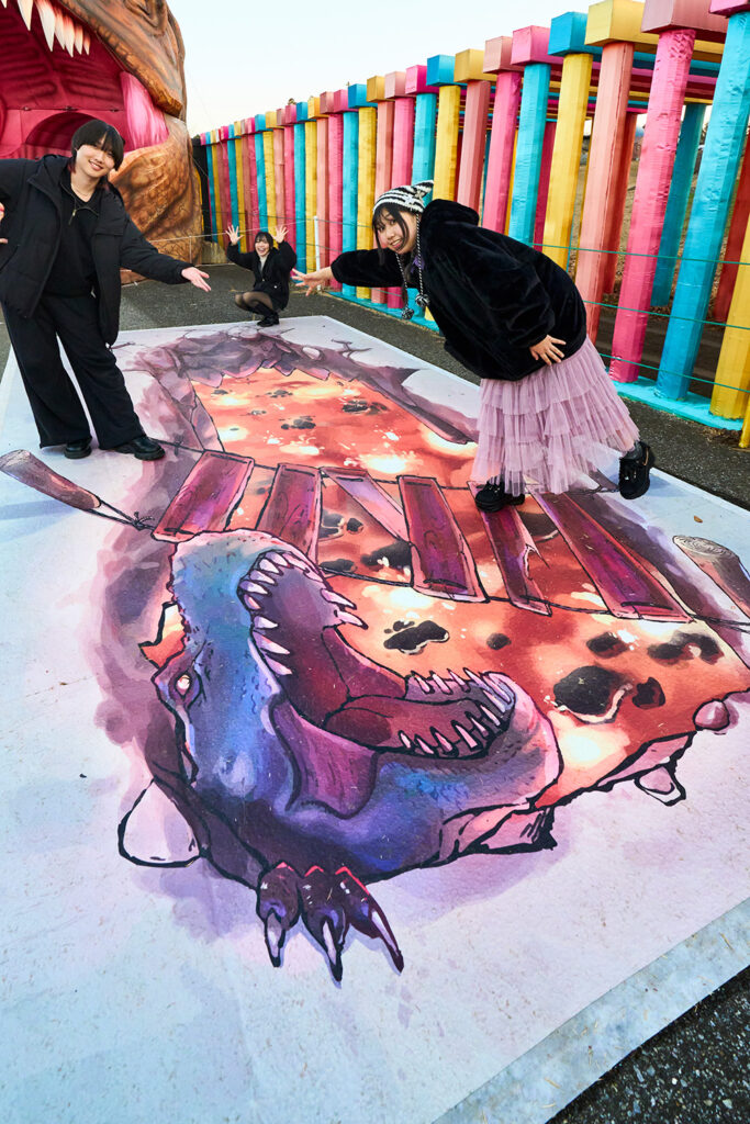 イルミネーション広場を貫く園内ロードに、来場者が思わず足を止めてしまうような立体的トリックアートを制作。