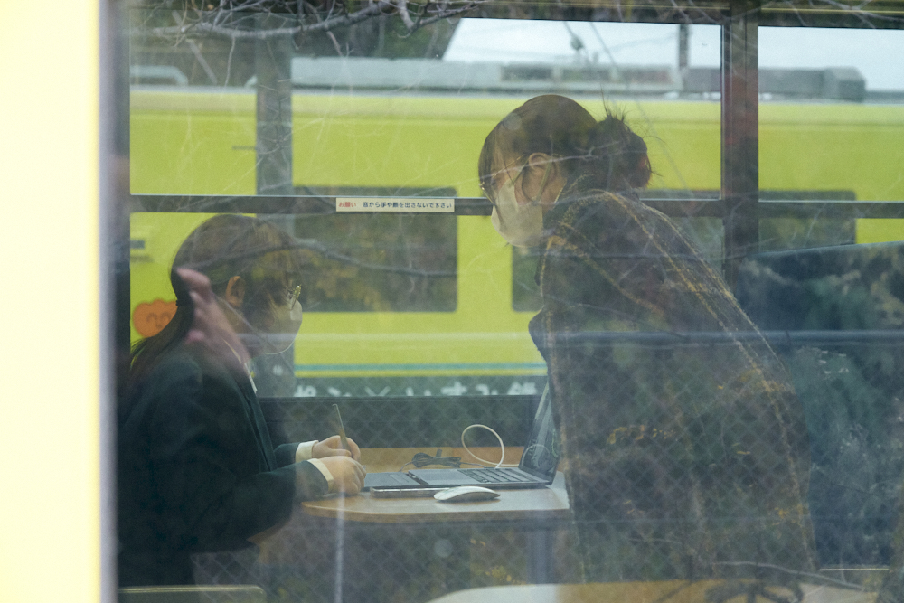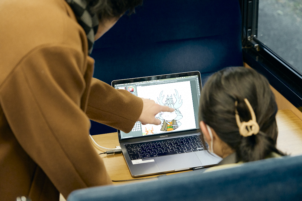 いすみ鉄道の列車内で、デジタル機材を使ったイラスト制作が体験できます。